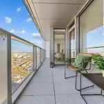 Priestranný apartmán na 34. poschodí - Dotknite sa oblakov v najvyššej budove v Bratislave EUROVEA má rozlohu 65 m^2 a nachádza sa len 5 minút chôdze od Ludusu s výhľadom na mesto. Staré Mesto Bratislava je vzdialené len 1,7 km, zatiaľ čo Bratislavský hrad je 2,2 km od apartmánu s jednou spálňou.